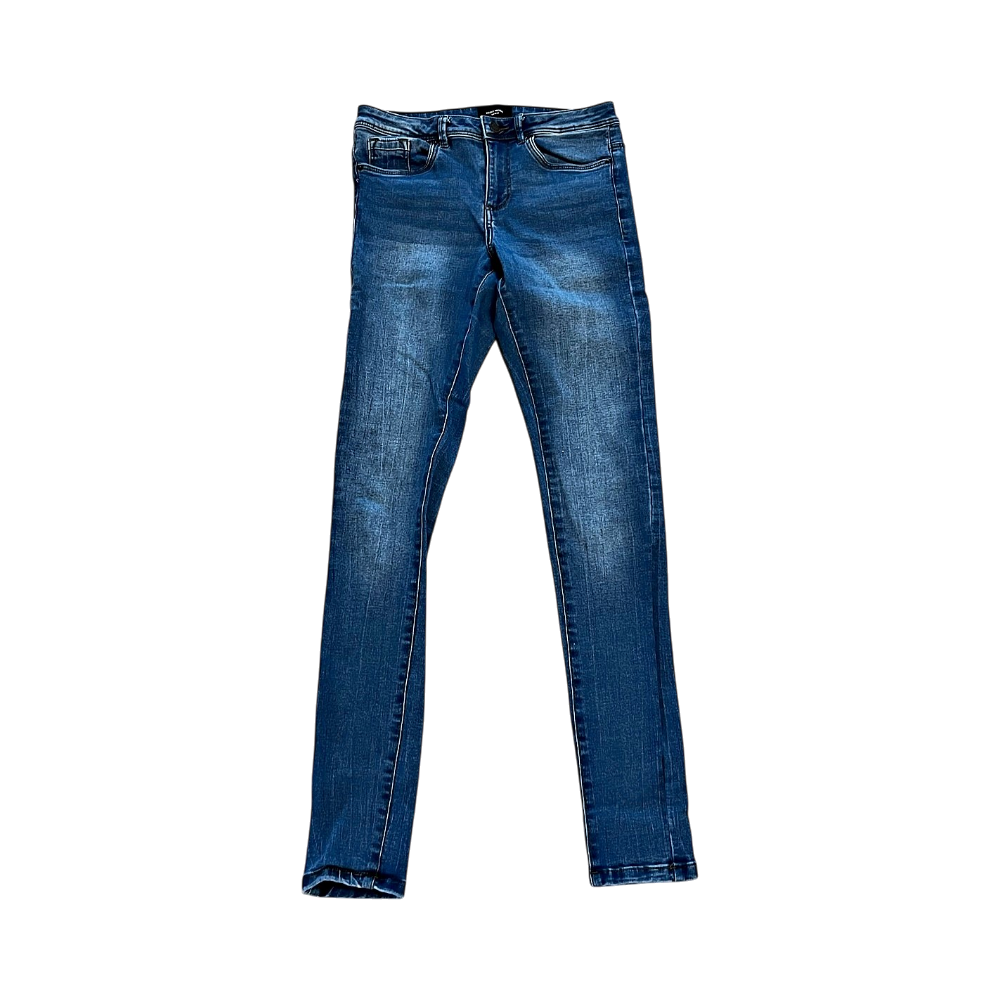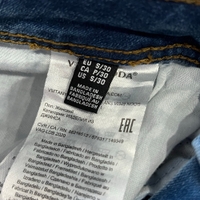 Siniset farkut. Koko S, lahkeenpituus 30. Vyötärönympärys noin 70 cm.