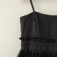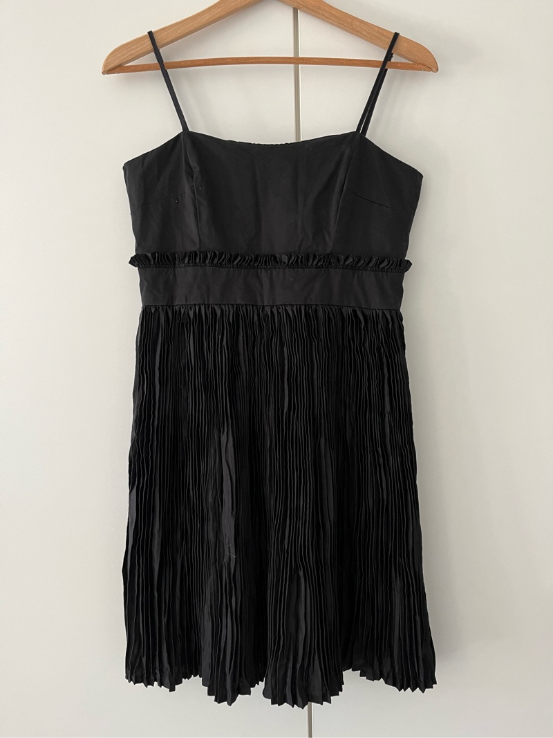 French Connectionin musta vekkihelmainen mekko. Merkitty koko 40 mutta mielestäni siihen pieni ja enemmänkin sopiva 38 kokoiselle. Takana vetoketju ja säädettävät olkaimet. Siistissä kunnossa