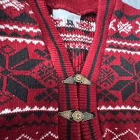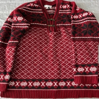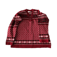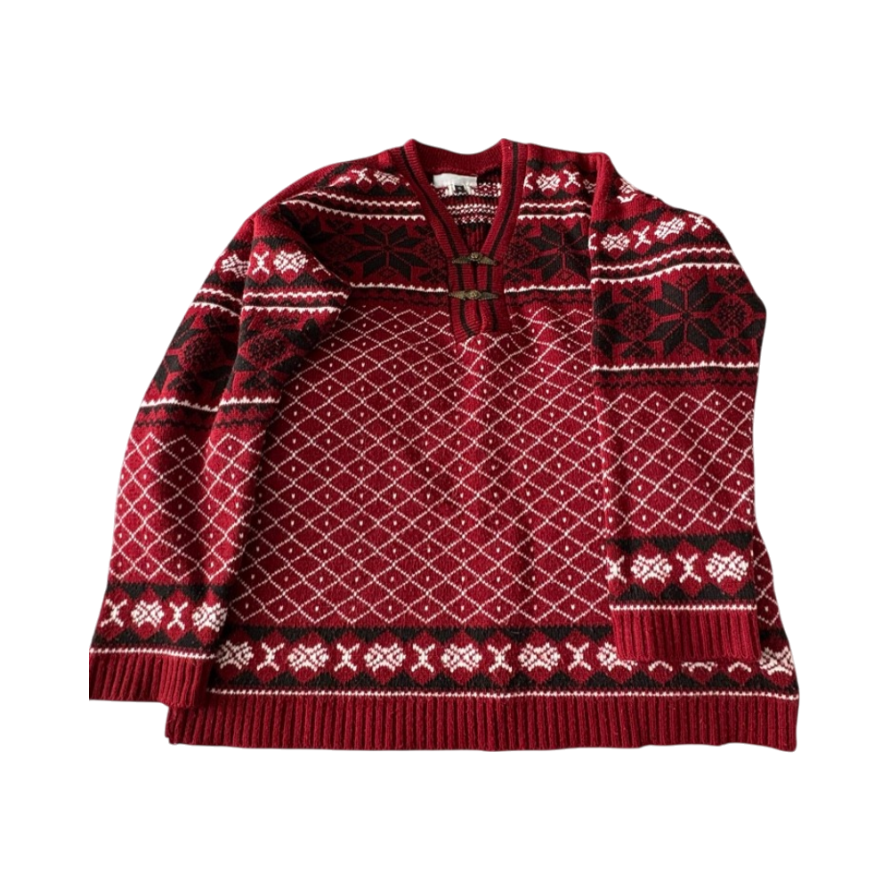 Punainen kuviollinen villapusero koristekiinnityksillä. Lämmin. Koko XL.
