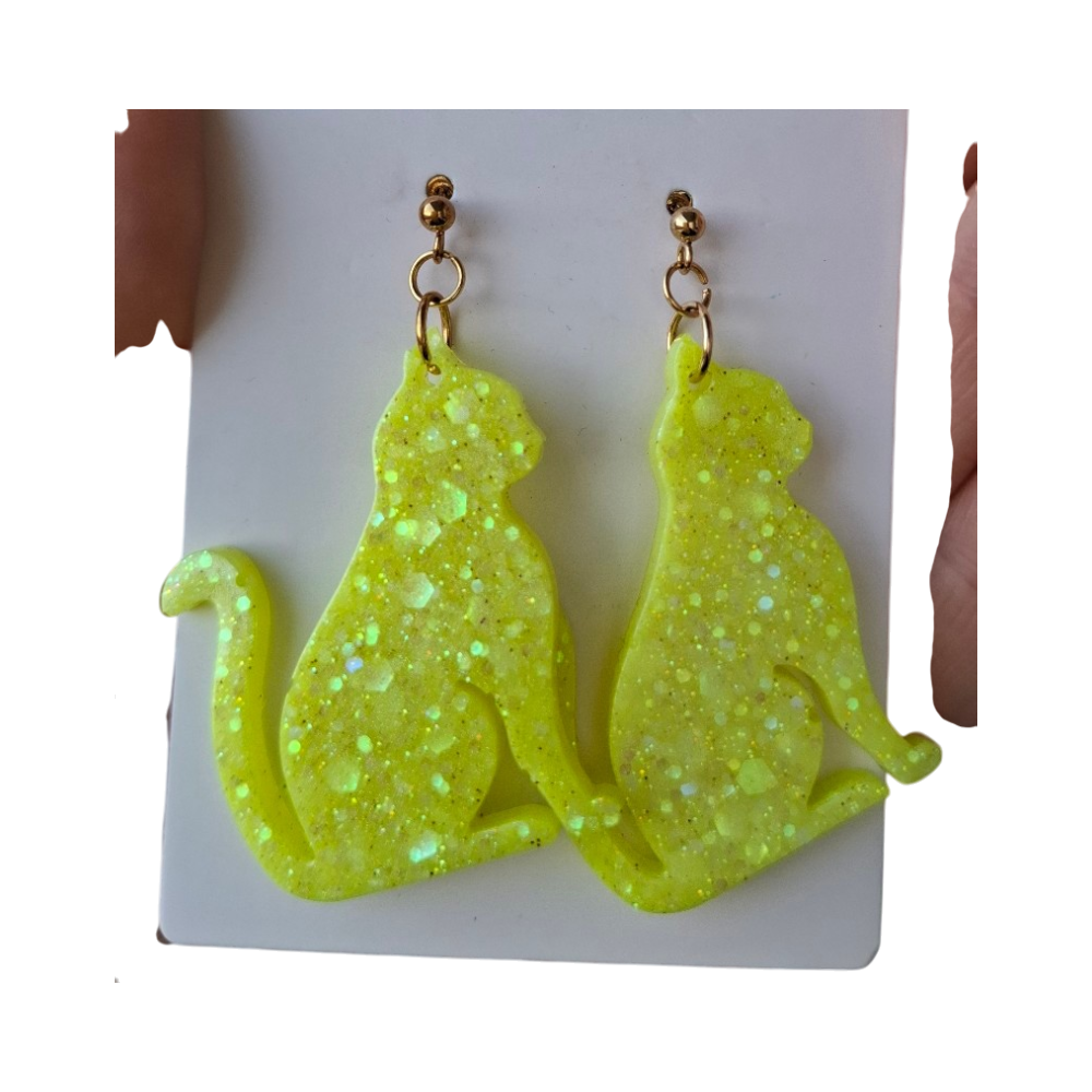 💛 Ihanat kirkkaan/ neonkeltaiset kissakorvikset napeilla ja kimalluksella!