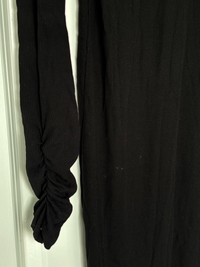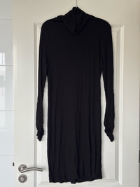 Pitkähihaista mustaa ribbineulottua mekkoa.