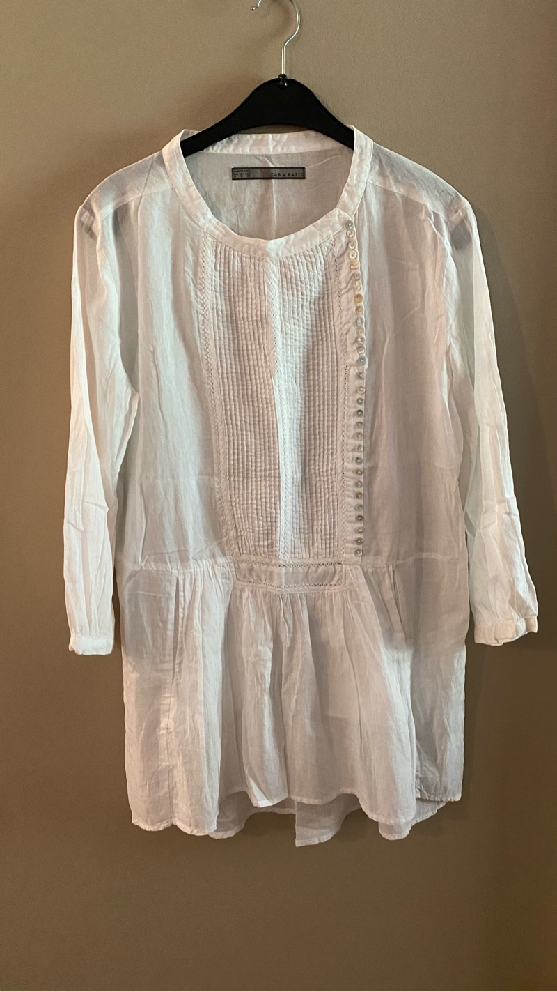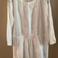 Valkoinen pitkähihainen tunika/mekko. Kivat yksityiskohdat.