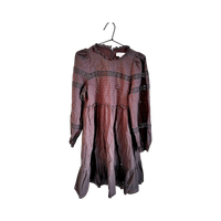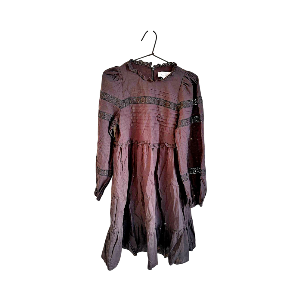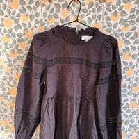 Pitkähihainen mekko jossa pitsiyksityiskohtia. Väri musta vaikka kuvassa vähän erilainen. Hyvässä kunnossa.