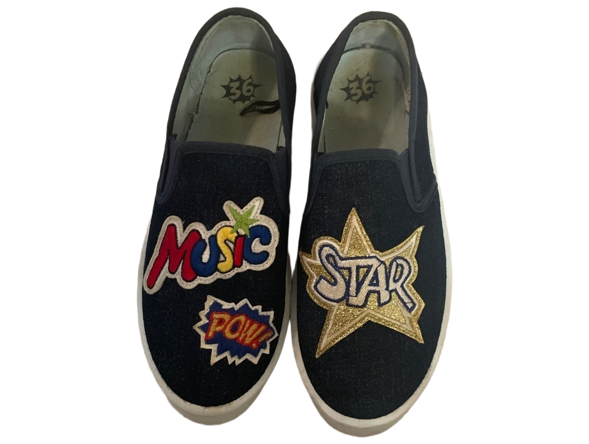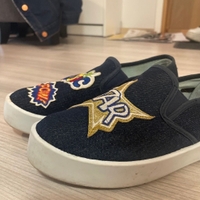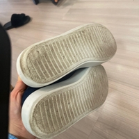 Erittäin vähän käytetyt, sillä minulle hieman liian isot. Toisessa kengässä valkoisessa osassa pieni jälki (kuva 4).