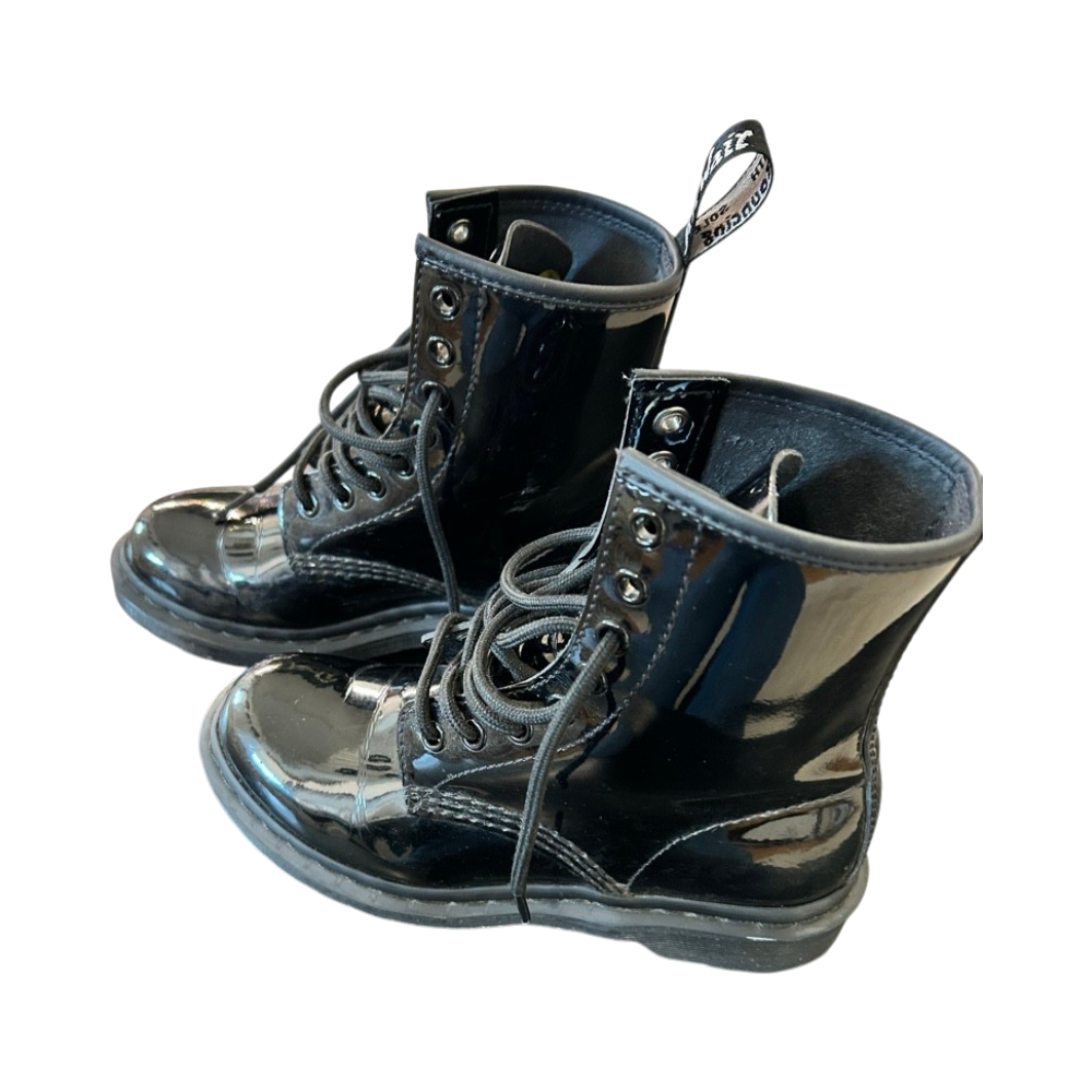 Mustat kiiltävät Dr. Martens -nilkkasaappaat, koko EU 36.