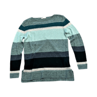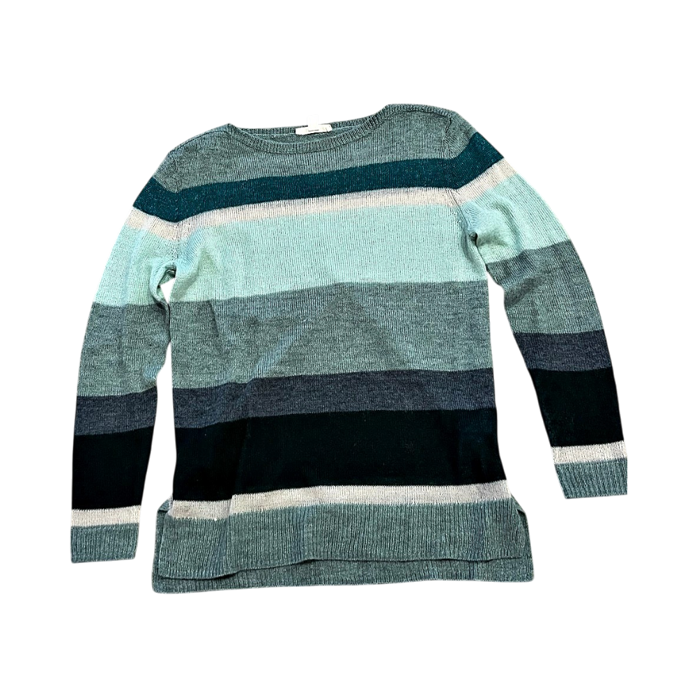 Pari kertaa käytetty raidallinen neulepusero, koko S. 22% villaa, 7% mohairia.