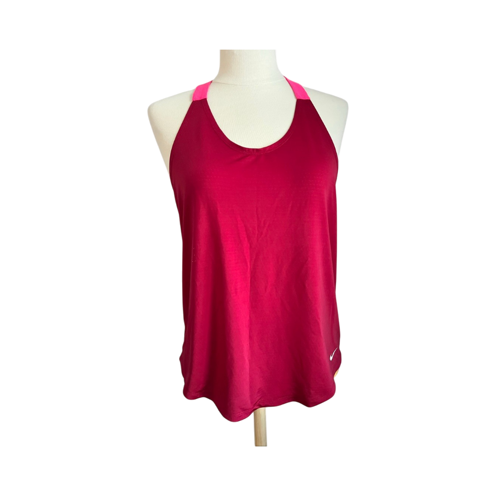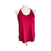 Kevyt ja hengittävä materiaali, joka siirtää kosteutta tehokkaasti. Takana tyylikäs racerback-leikkaus ja olkaimissa pirteä pinkki yksityiskohta. Erinomainen salille, juoksuun tai muuhun treeniin. Hyvässä kunnossa!