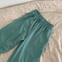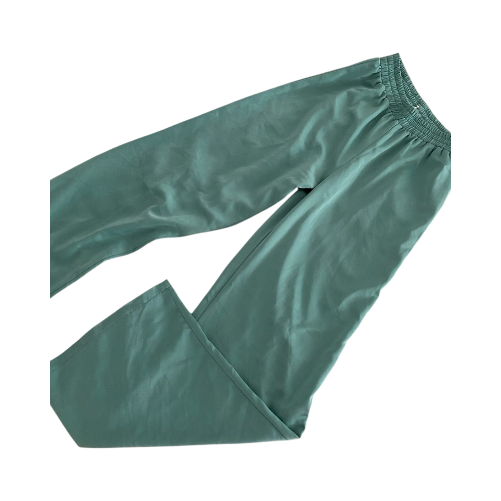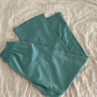 Kevyet leveälahkeiset housut, joustava vyötärö. Toisessa lahkeessa jälkeä. Kokomerkintä 42 vastaavat 36-38 ja ovat sopineet 175cm pituiselle