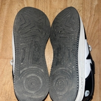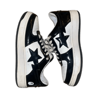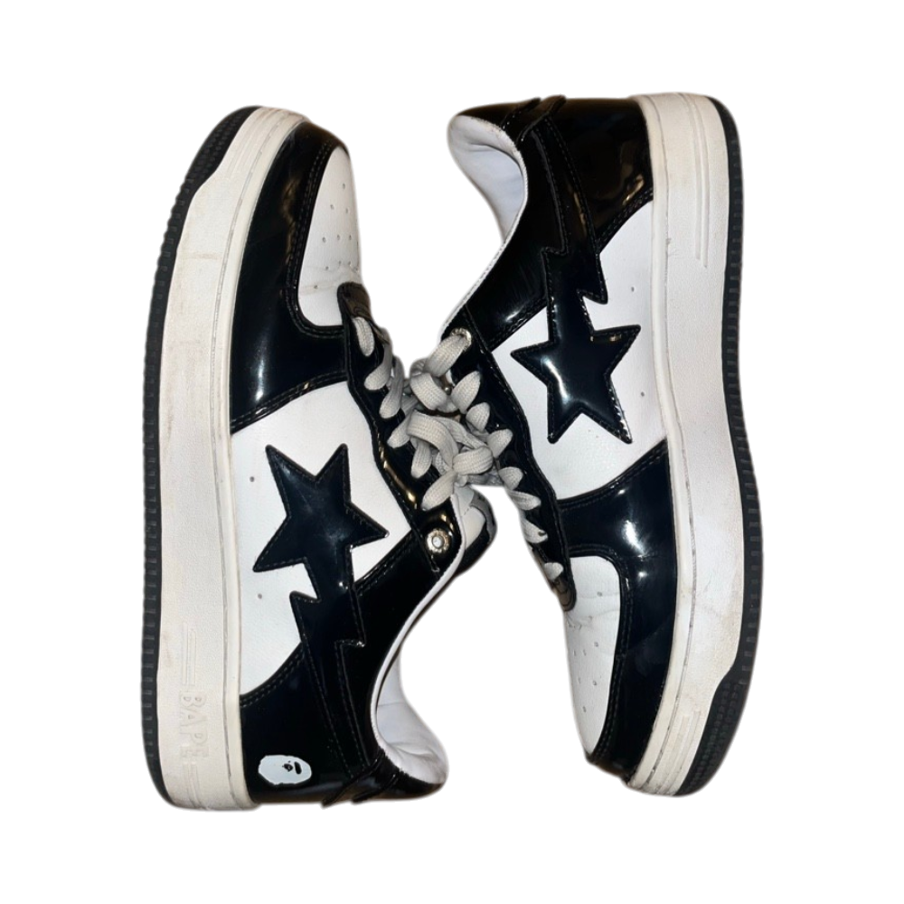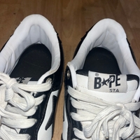 Mustavalkoiset BAPE STA -tennarit, käytetyt mutta hyväkuntoiset.