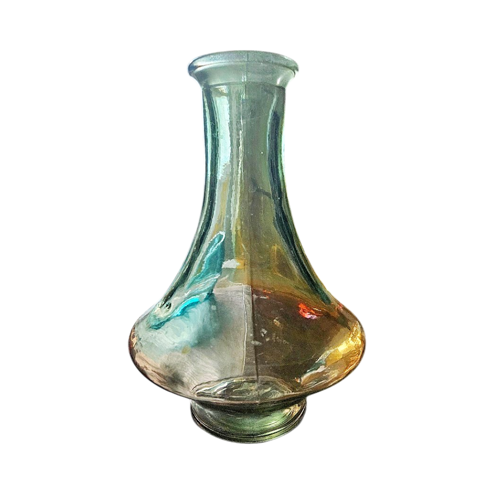 Kirkas lasinen maljakko, koriste-esine kotiin. Vahvaa lasia. Yksi pieni virhe suuosassa, muutoin ok. Mieto savunharmaa väri