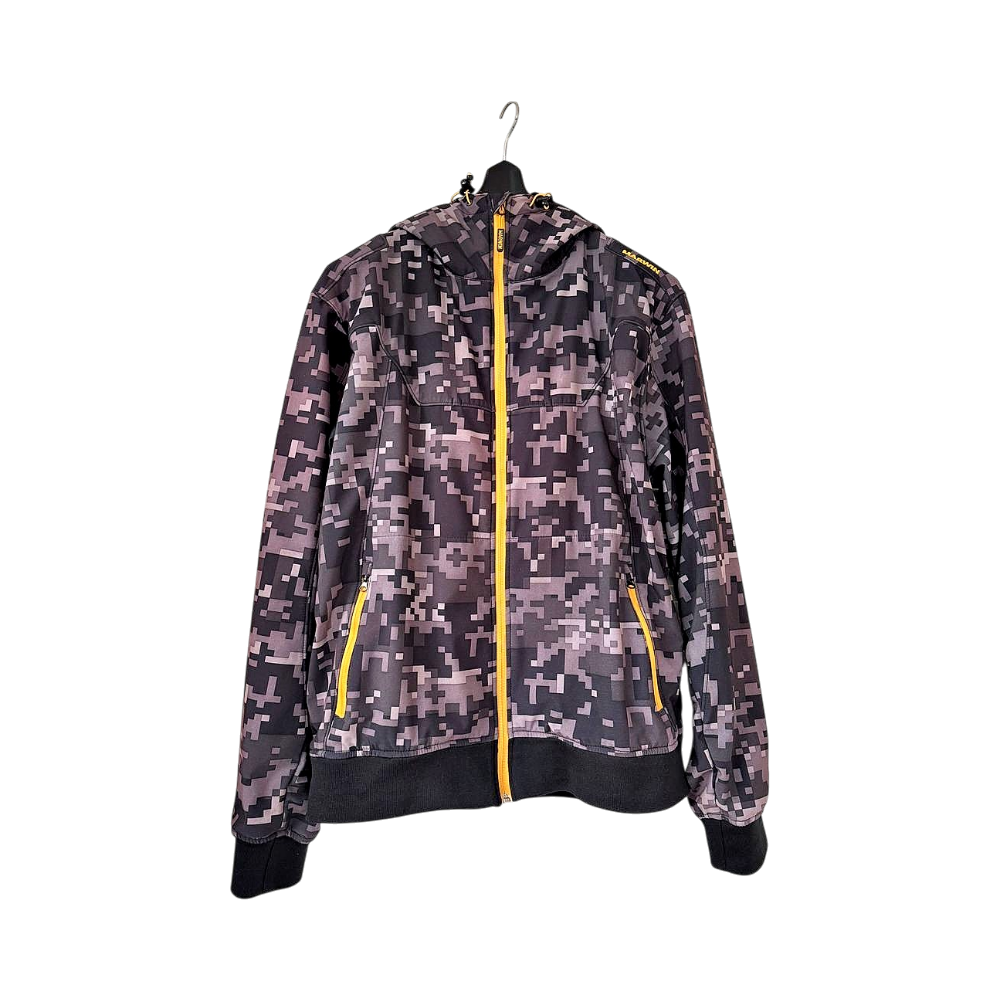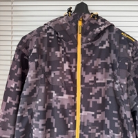 Marwin merkin miesten ulkoilutakki. Koko L, ks. tarkemmat mitat alla. Erinomaisessa kunnossa. Väritys on mustan harmaanruskea. Materiaali 94% polyesteri, 6% elastaani. Ulkokuori softshell-tyylistä materiaalia, sisäpuoli ohutta fleecemaista kangasta. Edessä vetoketjutaskut ja sisäpuolella yksi rintatasku verkkomateriaalia. Hupussa säätönyörit. Takki pitää jonkin verran tuulta, mutta ei pitkään vettä.
