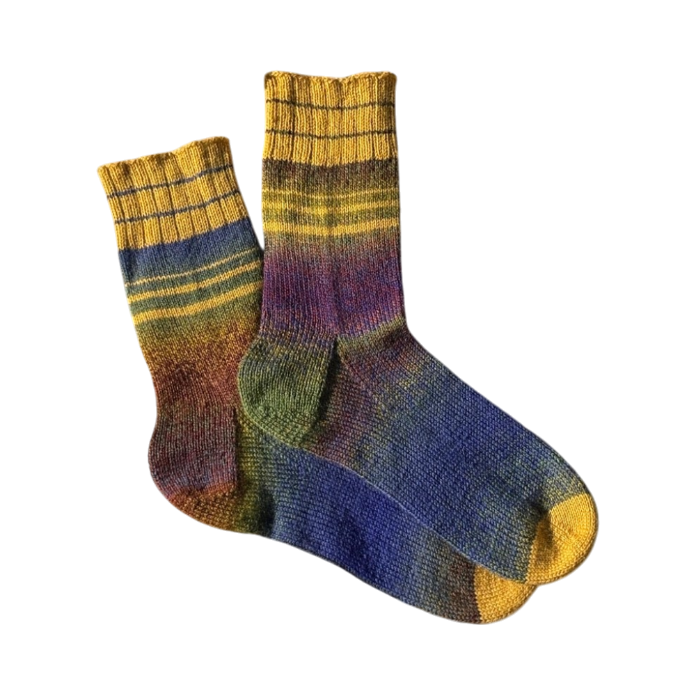 Käsinneulotut moniväriset villasukat, hyväkuntoiset.