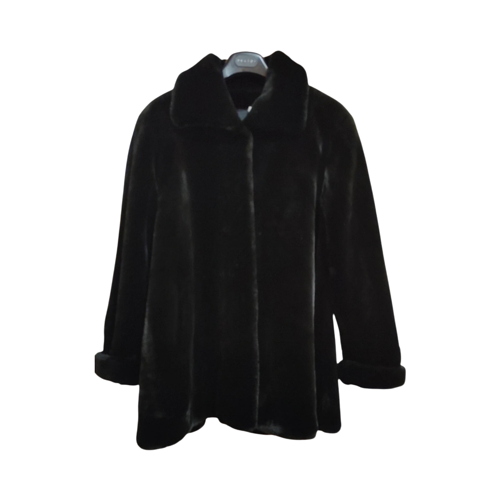 Lyhyt a-linjainen tekoturkistakki. Hakaskiinnitys. Hyvin vähän käytetty. Mittoja viimeisessä kuvassa.