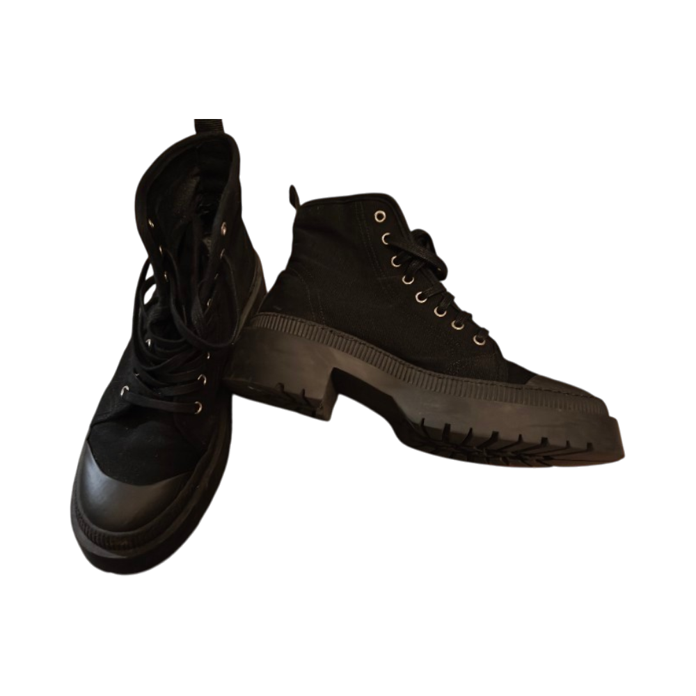 Canvas-kangasta, kumikärjet ja paksut kumipohjat. Kevyet jalassa.