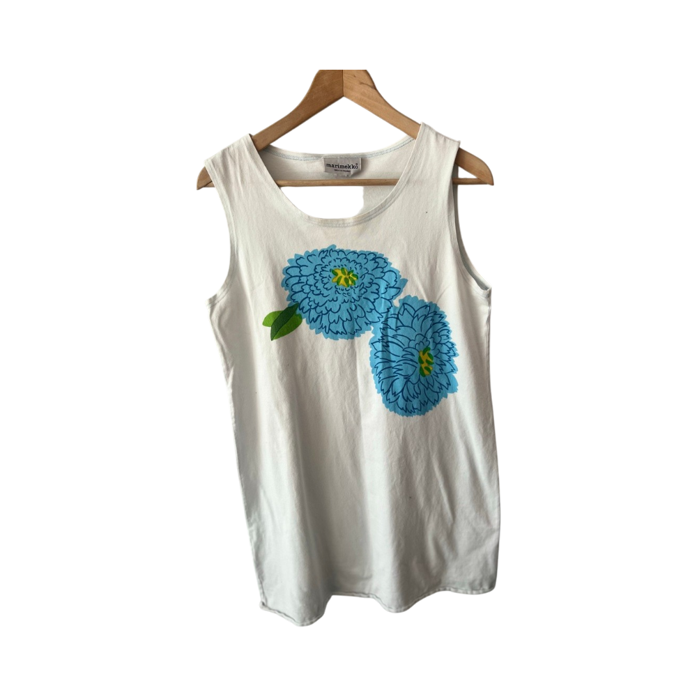 Marimekon Vintage minimekko/tunika, koko l. Muuten oikein siisti, mutta selässä haalea pieni tahra. Pituus 85cm ja kai kai mitta noin 50cm. Puuvillaa.