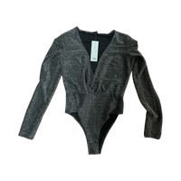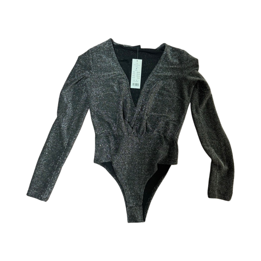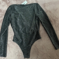 Käyttämätön kiiltävä body, pitkähiha, V-pääntie.