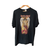 Käytön jälkeä jo aikalailla, haalistumaa paidassa ja printissä. Ihan ok paita silti! Anvil, L-koko, 100% puuvillaa.