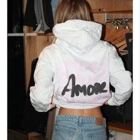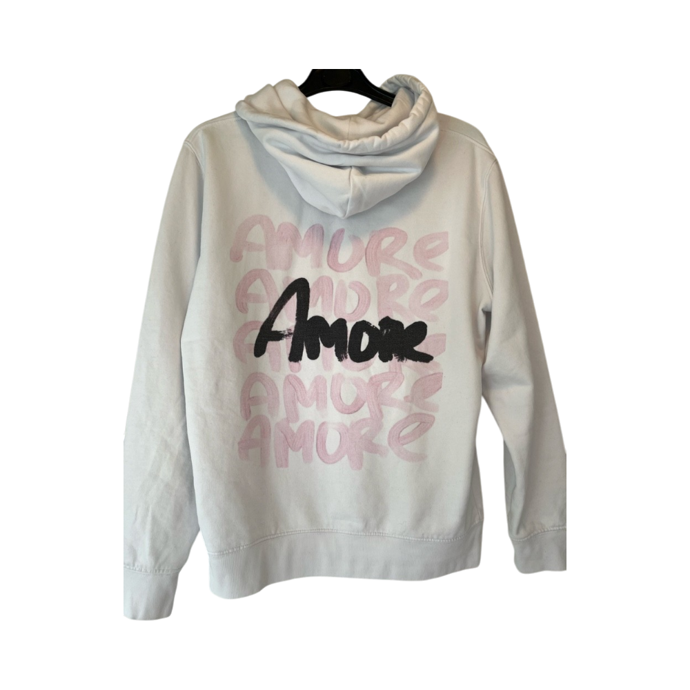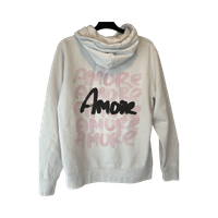 Valkoinen huppari pinkillä ja mustalla 'Amore' -printillä. Vain muutaman kerran käytetty. XS/S