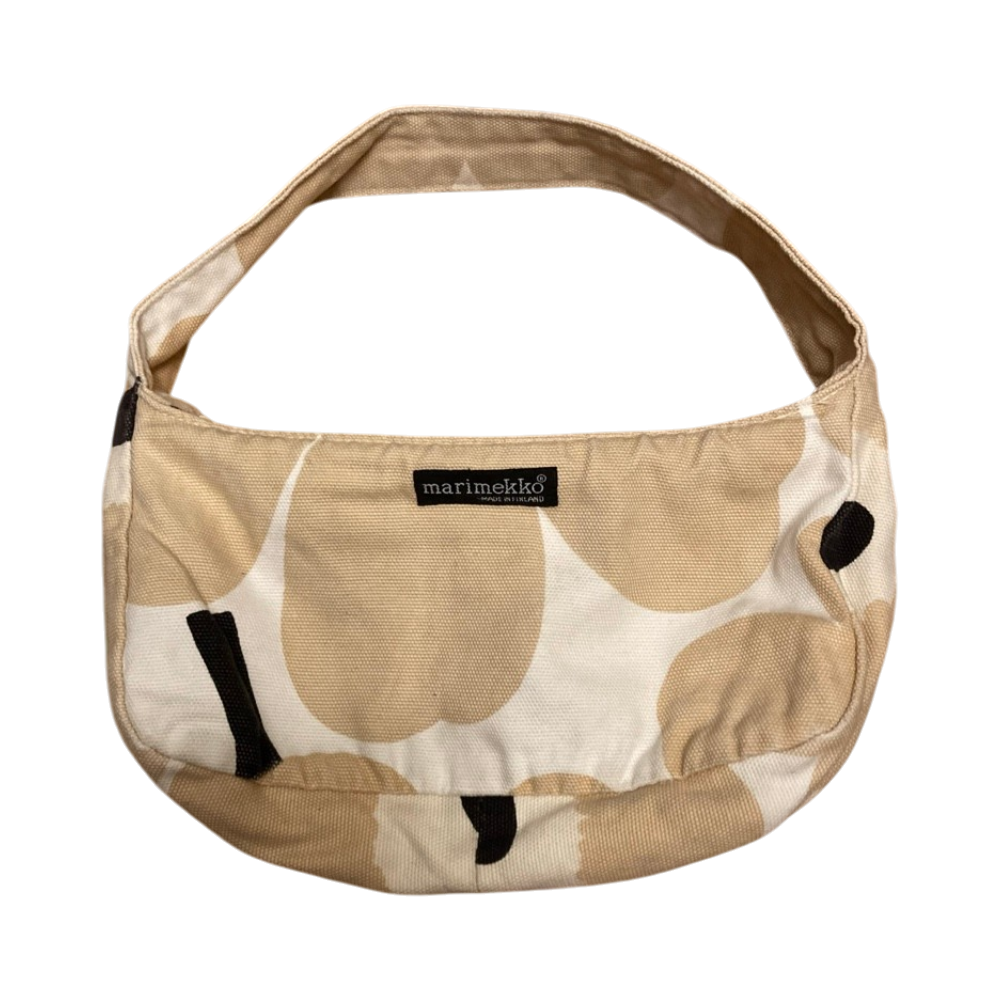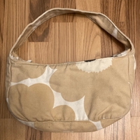 Marimekko beige-valkoinen mini käsilaukku Unikkokuosilla.