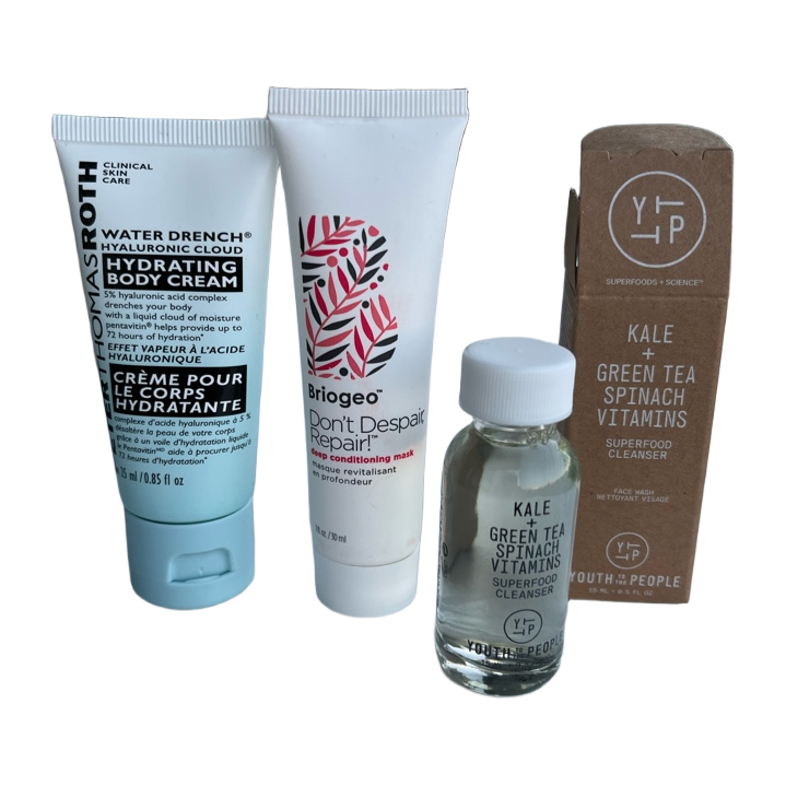 Matkakokoiset ihonhoito- ja hiustenhoitotuotteet. Sopivat hyvin matkalle mukaan.