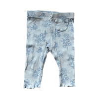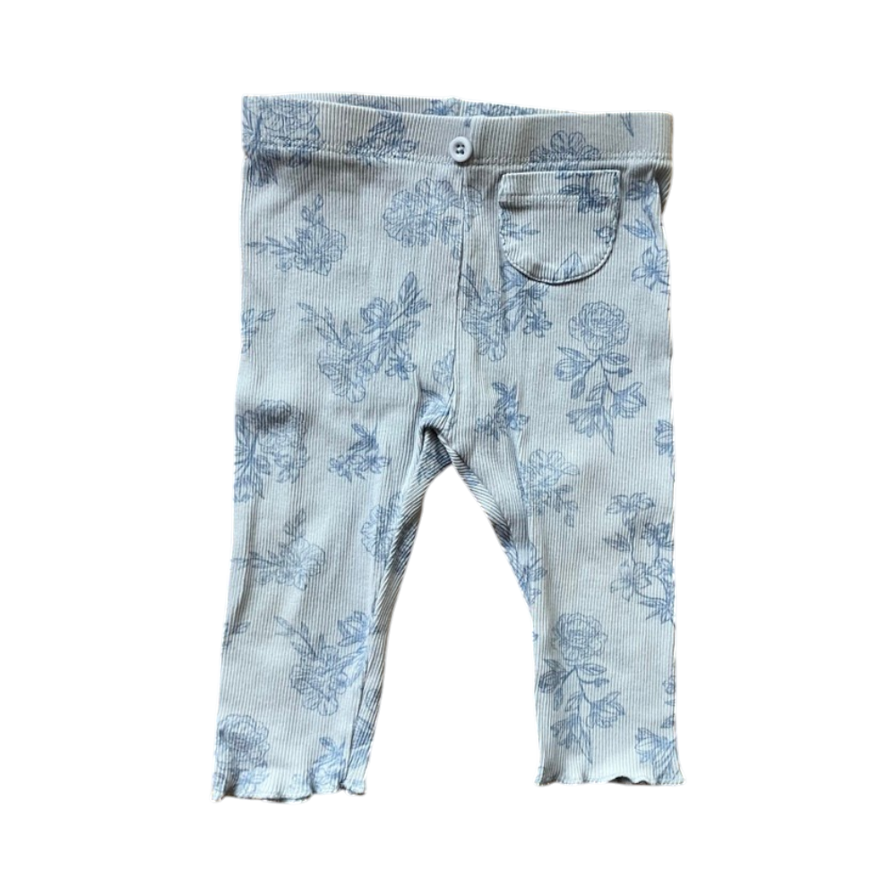 Vauvan ribbileggingsit kukkakuviolla. Koko ennemmin 68, käytettiin hieman lyhyenä lahkeista myös koossa 74, merkki So cute. Ehjät ja siistit. Pesty hajusteettomasti.