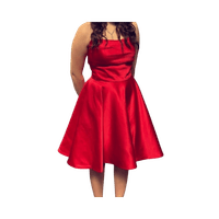 Lyhyt satiininen rippimekko jossa hulmuava helma ja taskut