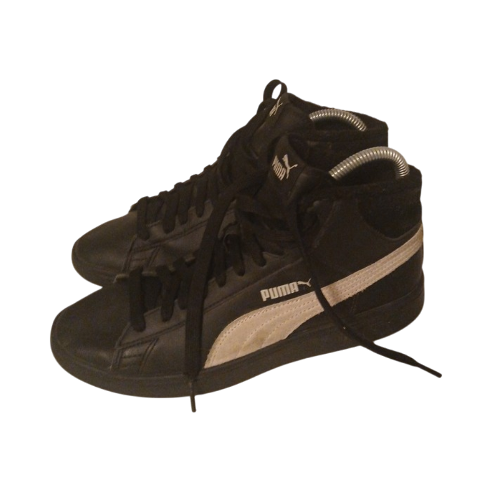 Mustavalkoiset korkeavartiset Puma-tenniskengät, käytetyt.