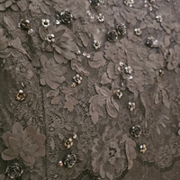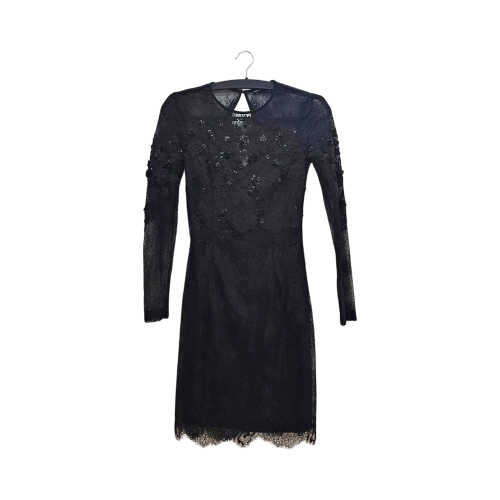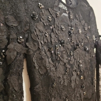 Elegantly designed with floral lace and embellishments. Features long sleeves and a back closure. Material: Lace.
