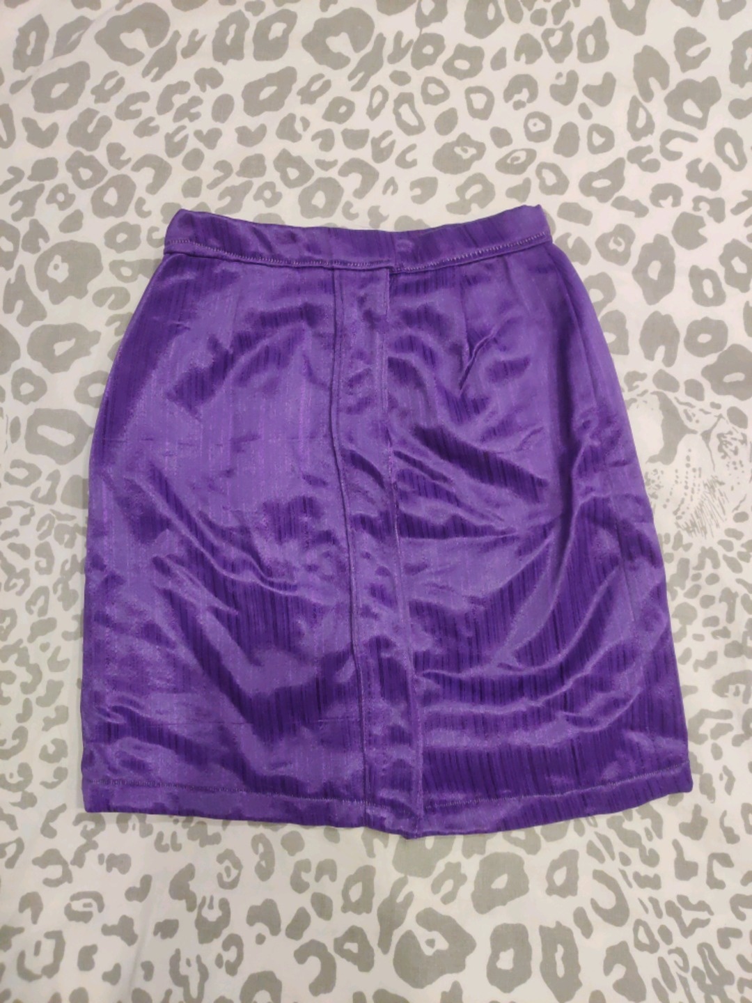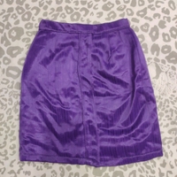 Ihanan kiiltävää, tukevaa kangasta. Ei jousta. Kiinnitys edessä vuorotellen hakasilla ja neppareilla. Kutakuinkin keskeltä puuttuu yhden hakasen vastakappale, ei näy tai haittaa käyttöä ja tilalle voi aina ommella uuden. Kankaassa raidallinen kuosi joka näkyy 3. kuvassa jossa myös kuva puuttuvasta hakasesta. Koko XXS - pieni XS.