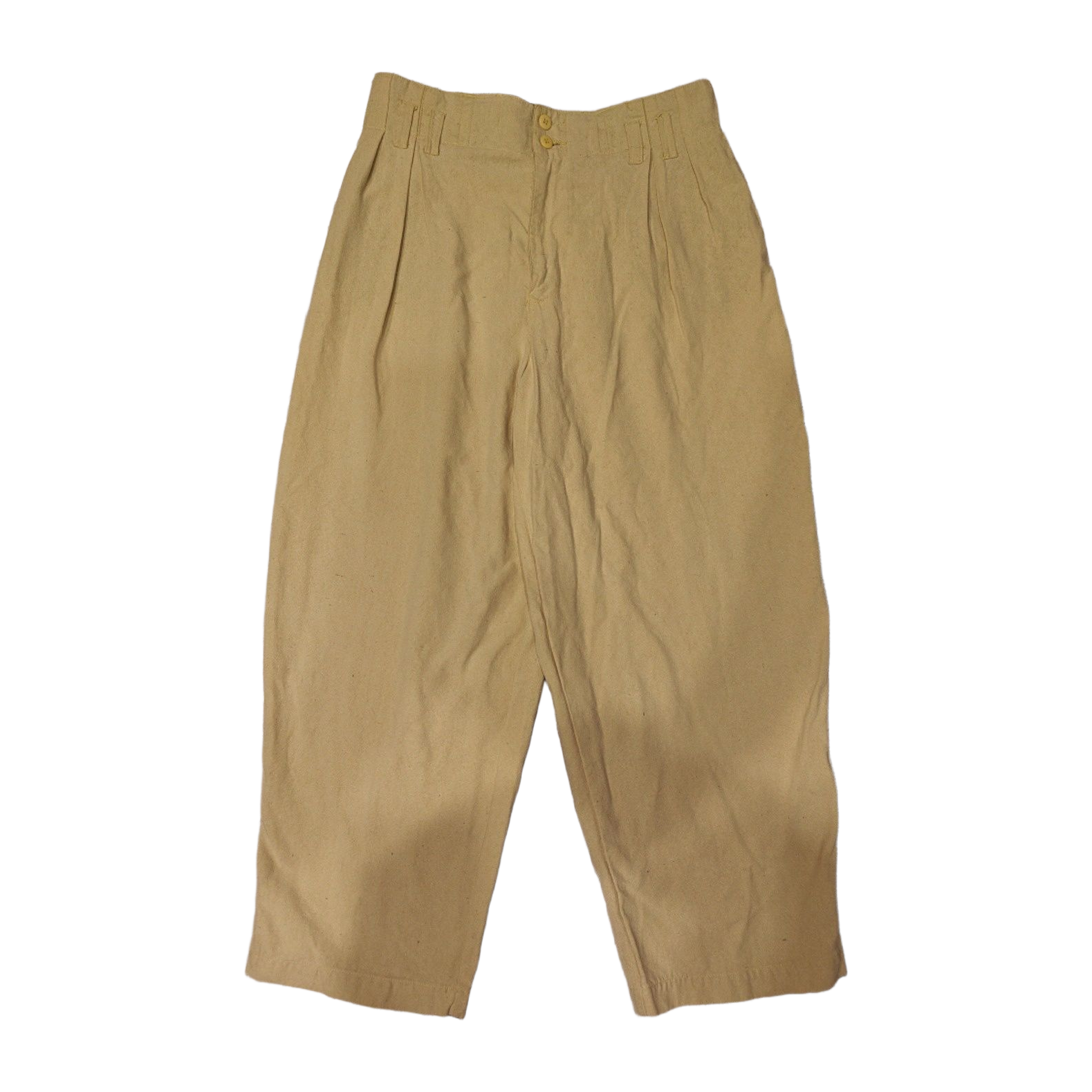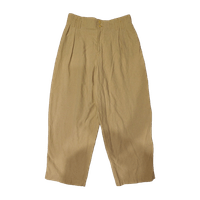 Triangle merkkiset vintage housut. Kokotaulukko kuvissa ja sen mukaan 36, mutta käytän itse normaalisti S kokoa ja ovat minulle isot. Väri näkyy kuvista todella huonosti, mutta vastaa enemmän 3. kuvan nappien väriä. Mukavan tuntuinen kangas, ei hiosta. Järkevän kokoiset taskus, vyölenkit ja edessä vetoketju ja napit.