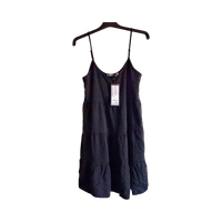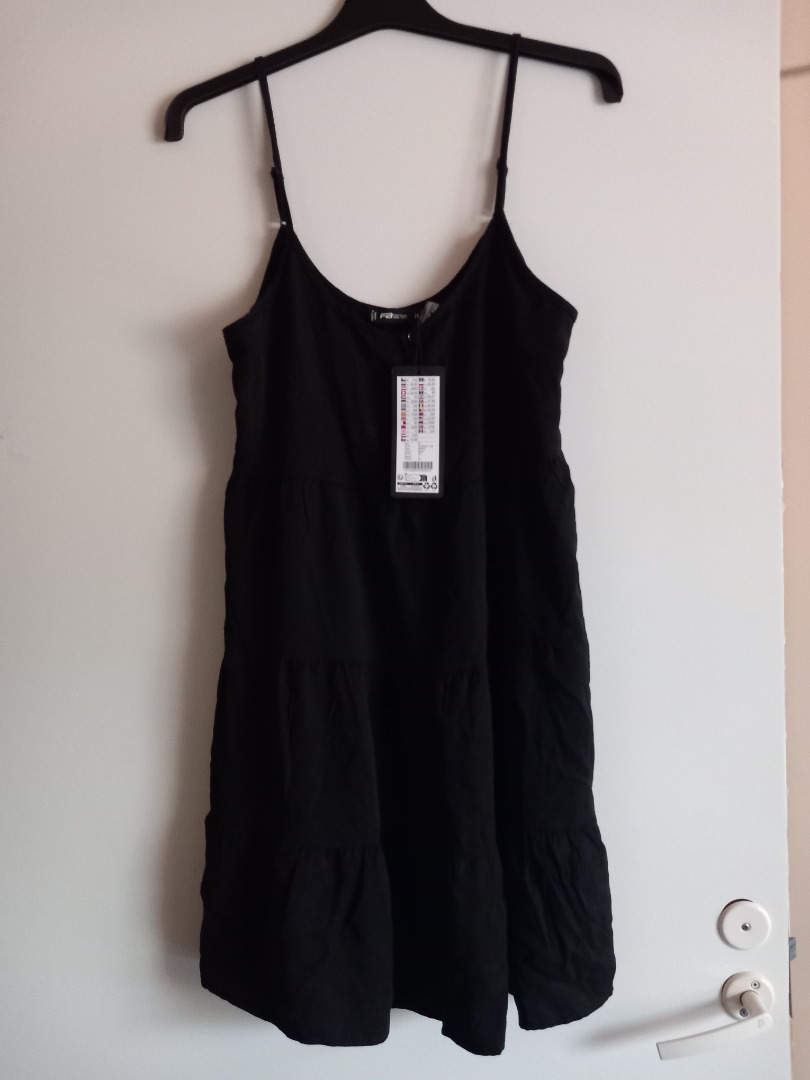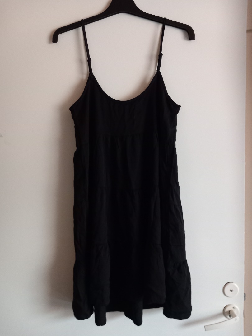 Hihaton, Viskoosi, Levenevä helma, Polvipituus, Säädettävät olkaimet, Laskeutuva, Spagettiolkain