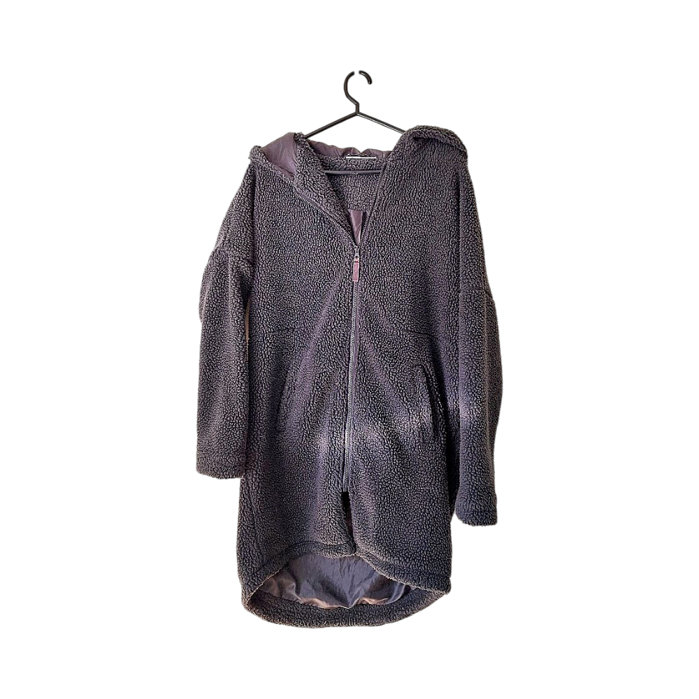 Tumman harmaa pörrötakki!🧸Hyvässä kunnossa. Takin ripustuslenkki on ratki toiselta puolelta mutta sen saa korjattua!