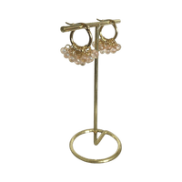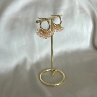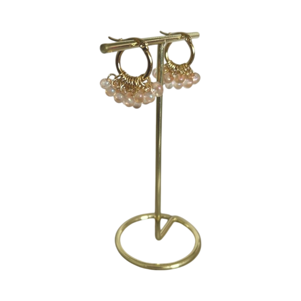 Käsintehdyt korvakorut lasihelmillä. Saatavilla sekä hopeisena että kultaisena. Renkaan halkaisija noin 1,5 cm. Lasihelmistä huolimatta hyvin kevyet