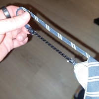 Navy and white striped lightweight sleeveless camisole top. Some layering, spaghetti strap DIY extended with black twisted cord.