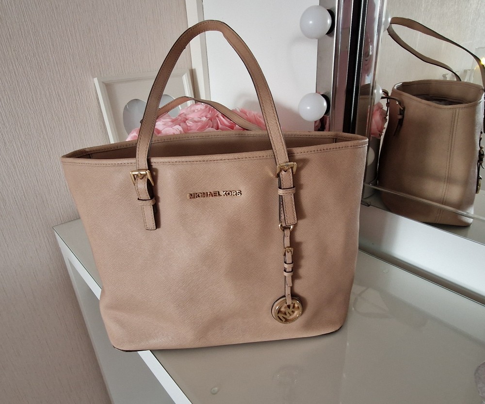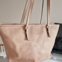 Michael Kors Jet Set laukku. Väri joku beigen ja vanhan roosan sekoitus, kultaiset metallit. Käytettynä ja puutteellisilla tiedoilla ostettu laukku. Saa lähteä eteenpäin, koska minun tarpeisiini liian huonossa kunnossa. Tämä oli vielä rajummassa kunnossa minulle tullessa, mutta olen puhdistanut siitä pahimmat jäljet ja hajut. Olen kuvannut joka puolelta eri kulmista. Jälkiä siis löytyy ulko ja sisäpuolelta eikä nahka ole enää ryhdikäs. Eli kunto huono ja kaipaa lisäpuhdistusta.