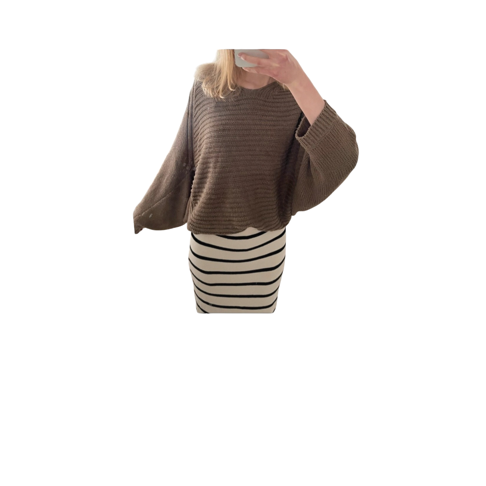Loose-fit ribbed knit sweater, dropped shoulders, cozy style.