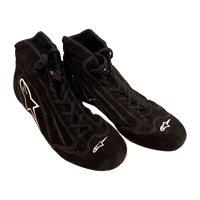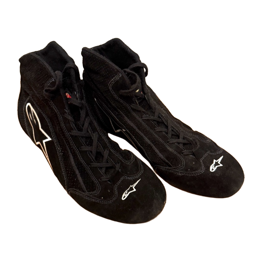 Miesten mustat ajokengät, koko 44. FIA 8856-2000 -standardin mukaiset (paloturvallisuus ym.).