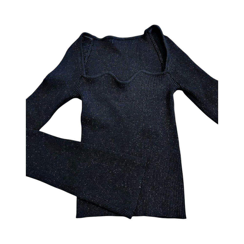 Black ribbed long sleeve top with glitter