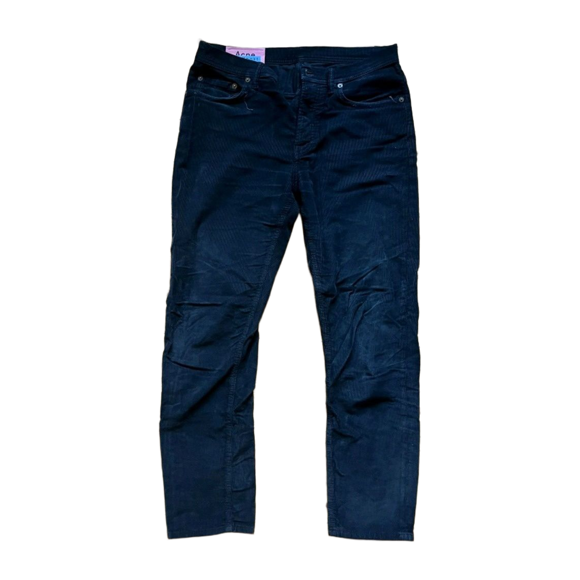 Acnen blå konstit. Materiaali tosi hyvää vakosamettia. Omat suosikkihousut, mutta kerran pesty hieman kovemmalla ohjelmalla ja kapenivat sen verran ettei enää istu omalle vyötärölle. Kokolapussa 31 mutta sopii nykyään paremmin 29-30 vyötäröiselle. Housut ovat hieman cropatut.