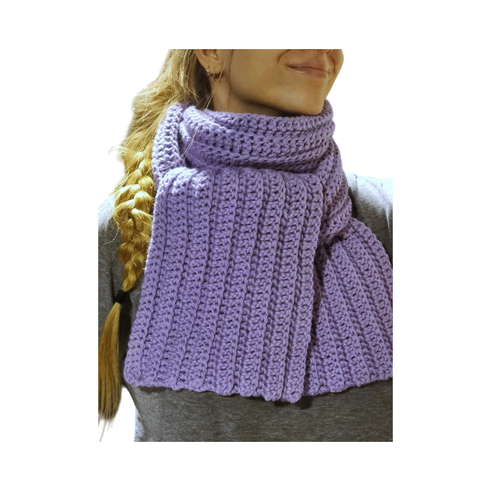 Kaksinkertaisesta 7 veljestä -langasta virkattu vaaleanlila kaulahuivi. Käyttämätön. Myynnissä myös pipo samasta langasta.