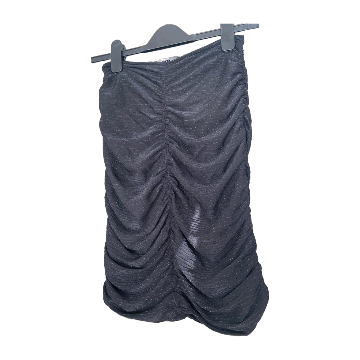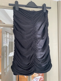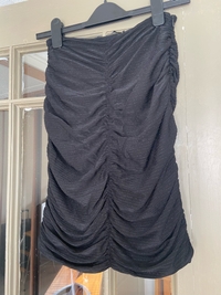 Black rouched chiffon mini skirt with glitter by Bikbok. Hidden zipper on side. Size small. Very good condition.