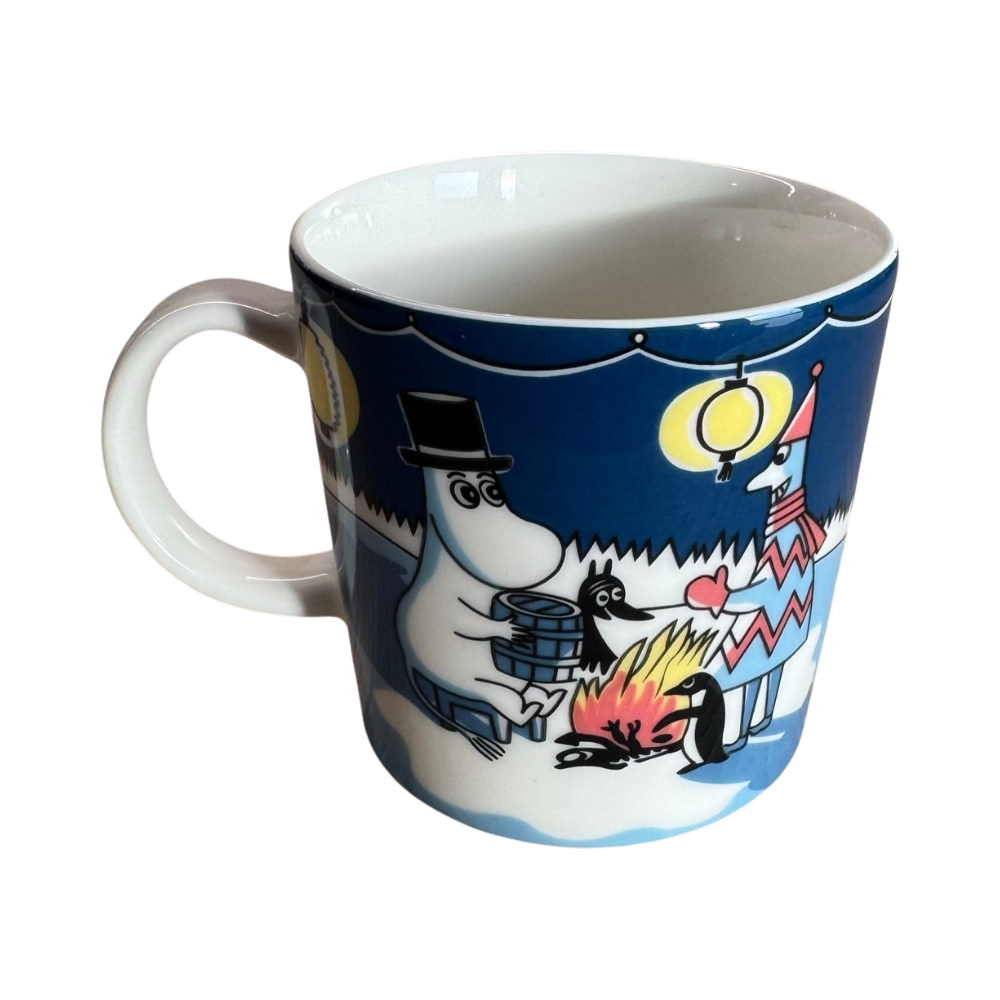 Myydään kuvienmukaisessa kunnossa oleva muumimuki: Talvinuotio