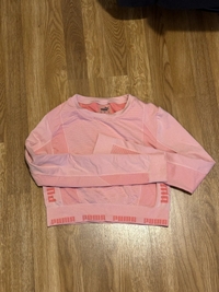 Vaaleanpunainen pitkähihainen urheilupaita, Puman logo edessä. Tosi Hyvää kunto