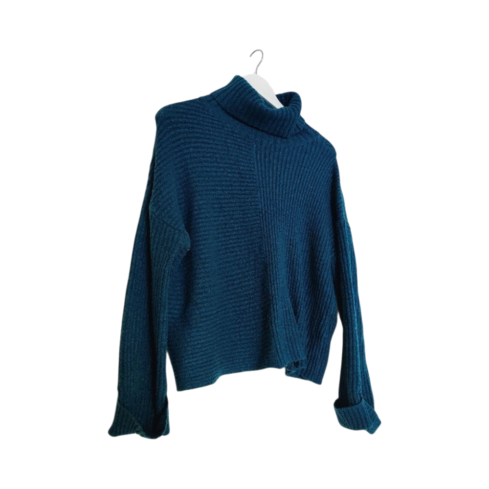 Cozy ribbed turtleneck sweater, short fit, long sleeves.