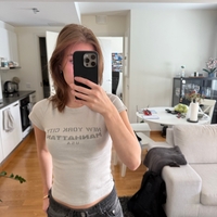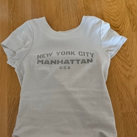 Fitted white t-shirt with Manhattan print, short sleeves.