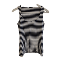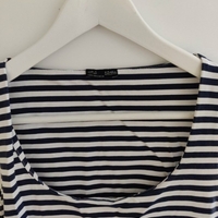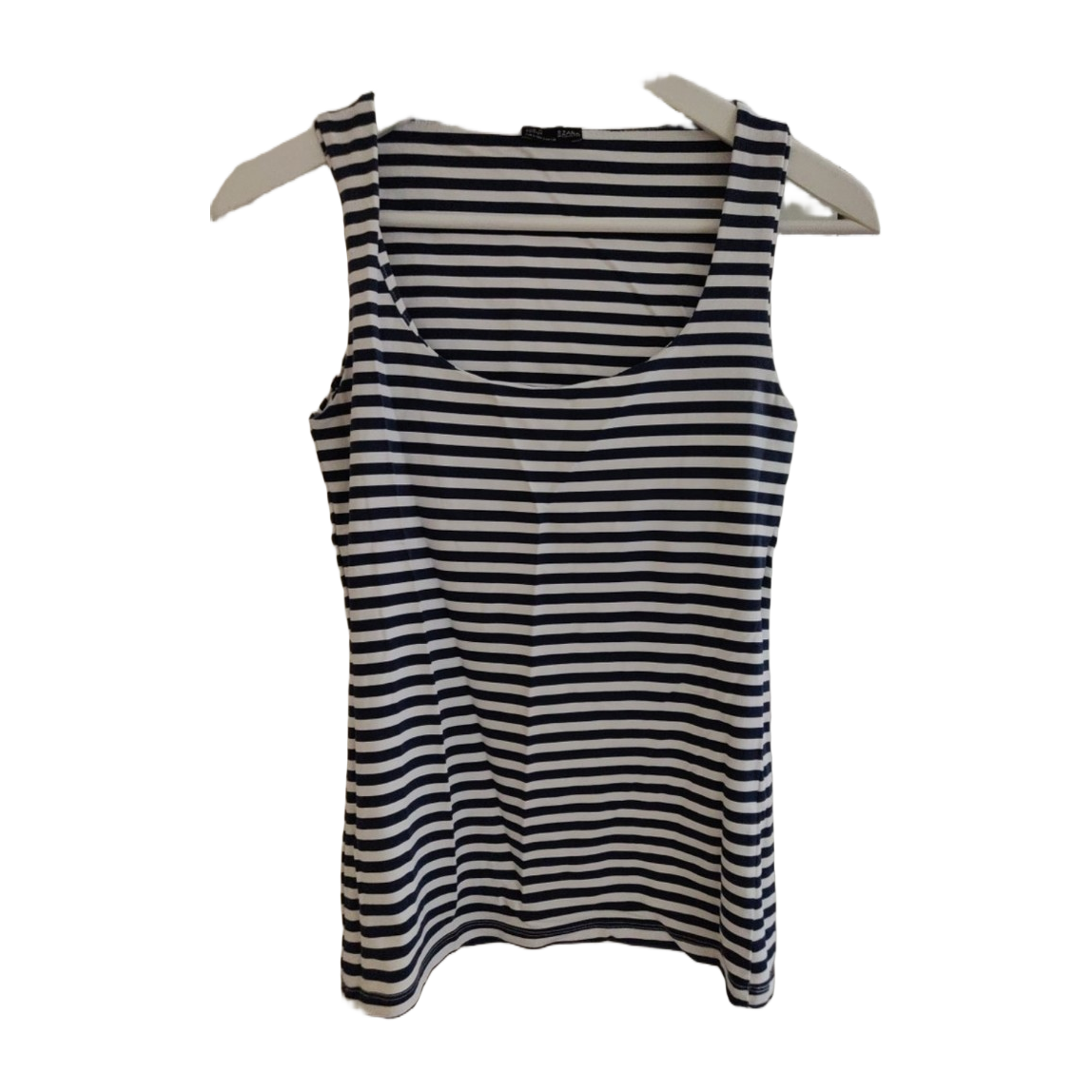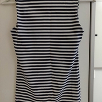 Uudenveroinen Zaran siisti toppi tummansinisillä raidoilla, napakkaa joustavaa materiaalia. Koko S. Polyamidi/elastaani.