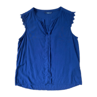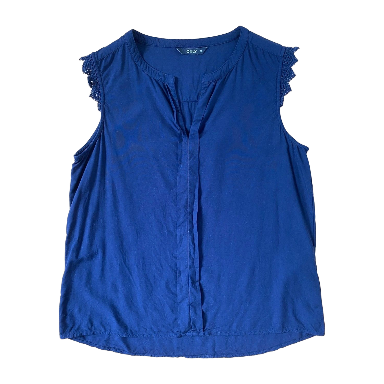 Kaunis tummansininen, siisti paita. Olkapäillä nätit pitsiyksityiskohdat (kuvassa väri vääristyy, mutta totuudenmukainen väri on tumma sininen, jotain ensimmäisten ja viimeisten kuvien väliltä). Käytetty kerran, erittäin hyvässä kunnossa.
