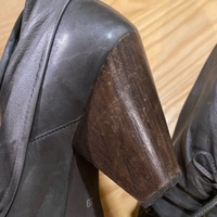 Kauniit muhkeat nahkanilkkurit. Korot puuta, korkeus n. 7 cm. Täydelliset kevät- ja syyskengät, tai toimistokäyttöön! Kunto erittäin hyvä, korkolaput saattavat vaatia vaihtoa. Tehty Portugalissa.