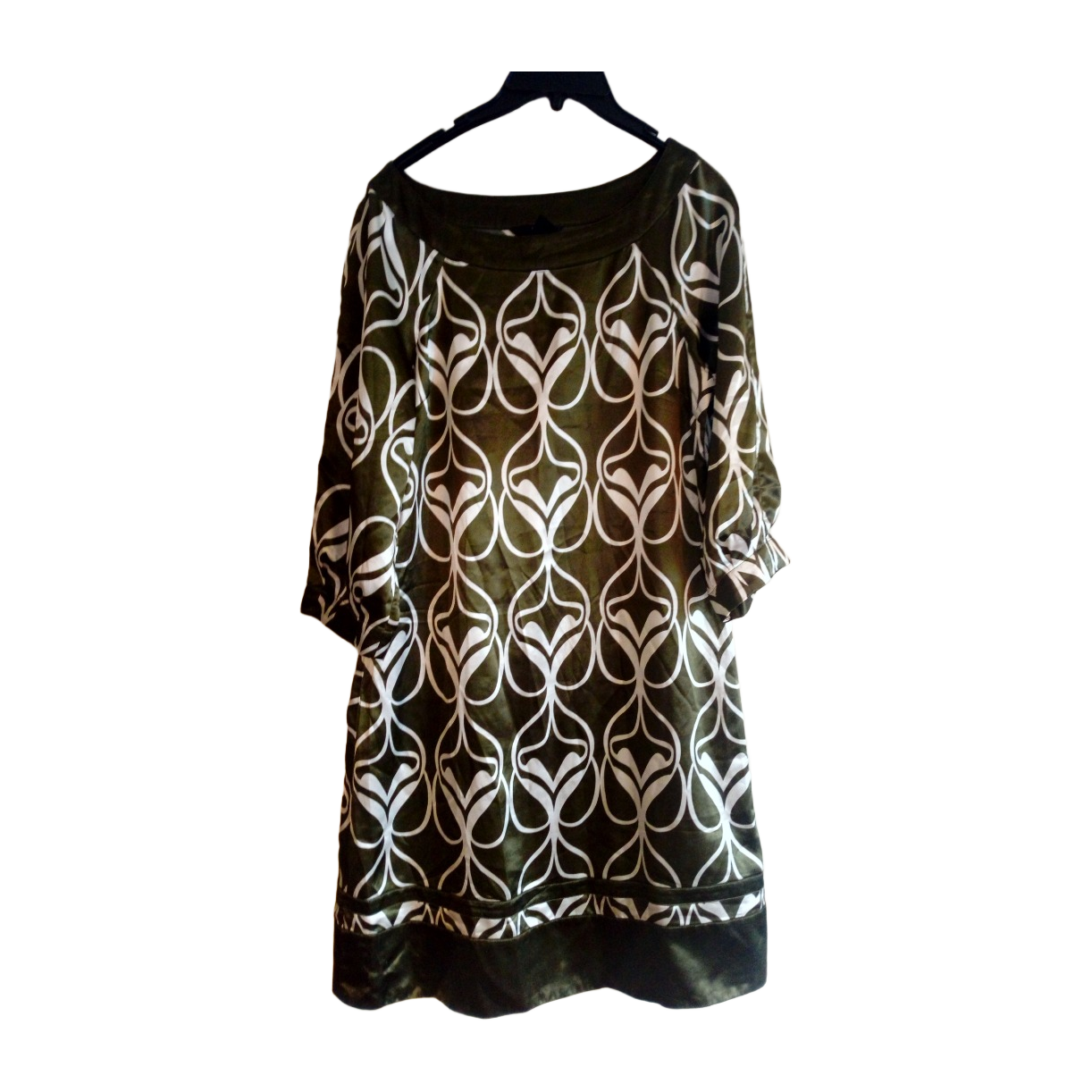 Polvipituinen, kiiltävä, kuviollinen mekko.