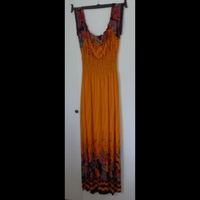 Off shoulder trikoomekko, maksipituus olka-helma n. 155 cm. Materiaali on todella venyvää.